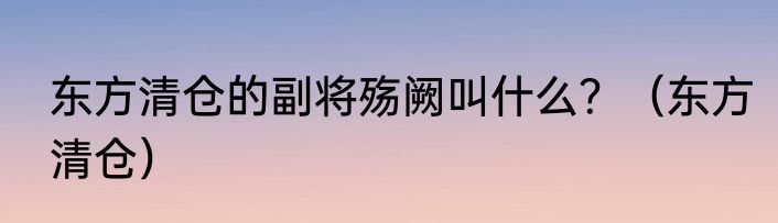 东方清仓的副将殇阙叫什么?(东方清仓)