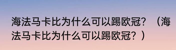 提及海法马卡比为什么可以踢欧冠?(海法马卡比为什么可以踢欧冠?)的相关内容,许多人不太了解,来看看小琼的介绍吧!