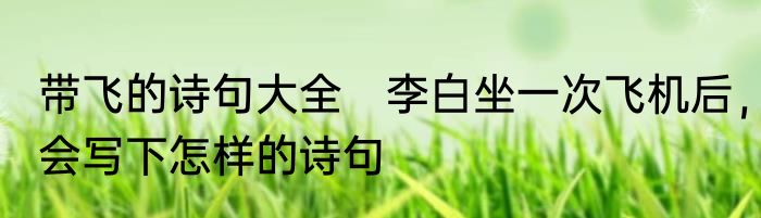 带飞的诗句大全 李白坐一次飞机后,会写下怎样的诗句