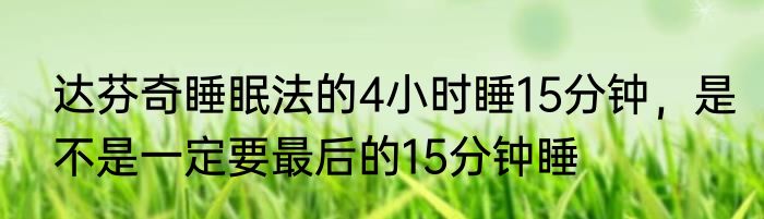 达芬奇睡眠法的4小时睡15分钟,是不是一定要最后的15分钟睡?