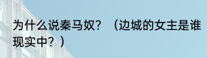 为什么说秦马奴?(边城的女主是谁现实中?)