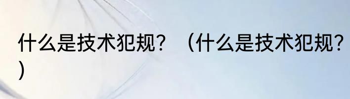 提及什么是技术犯规?(什么是技术犯规?)的相关内容,许多人不太了解,来看看小莲的介绍吧!