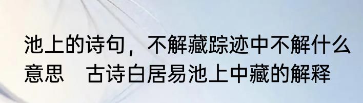 池上的诗句,不解藏踪迹中不解什么意思 古诗白居易池上中藏的解释