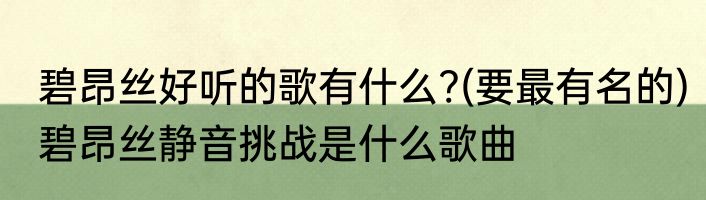 碧昂丝好听的歌有什么?(要最有名的) 碧昂丝静音挑战是什么歌曲