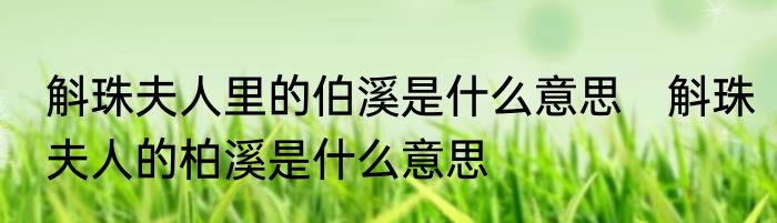斛珠夫人里的伯溪是什么意思 斛珠夫人的柏溪是什么意思