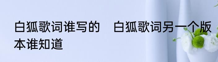 白狐歌词谁写的 白狐歌词另一个版本谁知道