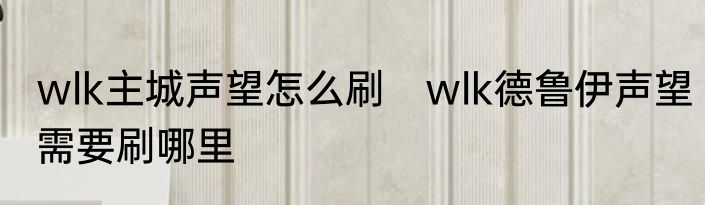 wlk主城声望怎么刷 wlk德鲁伊声望需要刷哪里