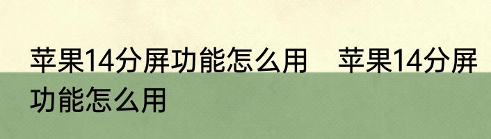 苹果14分屏功能怎么用 苹果14分屏功能怎么用