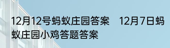 12月12号蚂蚁庄园答案 12月7日蚂蚁庄园小鸡答题答案