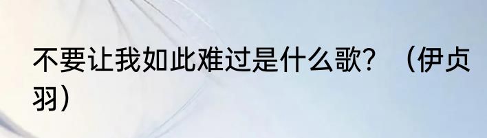 不要让我如此难过是什么歌?(伊贞羽)