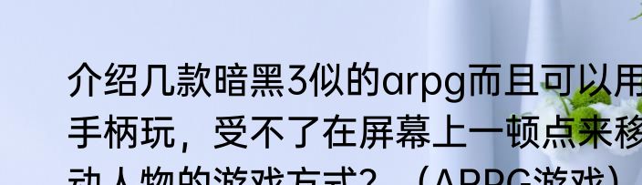 介绍几款暗黑3似的arpg而且可以用手柄玩,受不了在屏幕上一顿点来移动人物的游戏方式?
