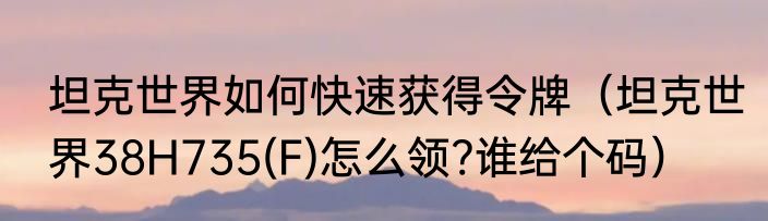 坦克世界如何快速获得令牌(坦克世界38H735(F)怎么领?谁给个码)