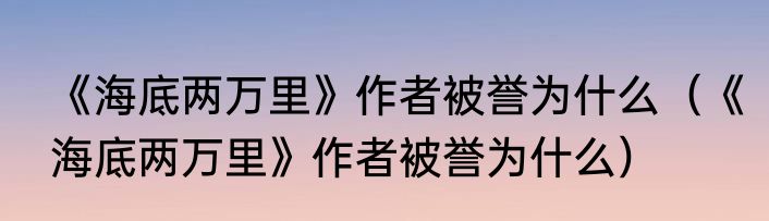 《海底两万里》作者被誉为什么(《海底两万里》作者被誉为什么)
