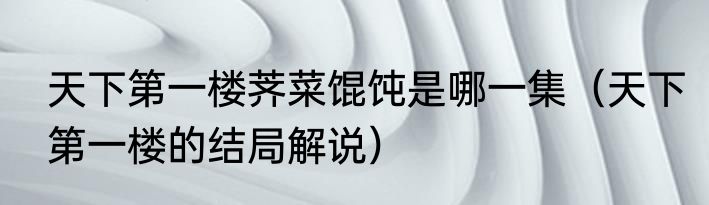 天下第一楼荠菜馄饨是哪一集(天下第一楼的结局解说)