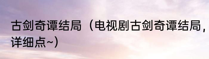 古剑奇谭结局(电视剧古剑奇谭结局,详细点~)