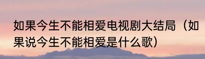 如果今生不能相爱电视剧大结局(如果说今生不能相爱是什么歌)