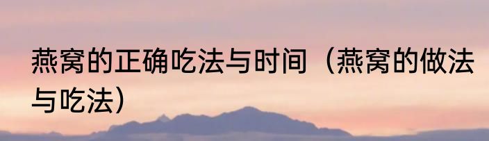 燕窝的正确吃法与时间(燕窝的做法与吃法)
