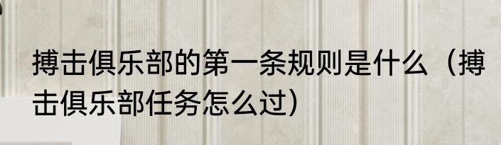 搏击俱乐部的第一条规则是什么(搏击俱乐部任务怎么过)