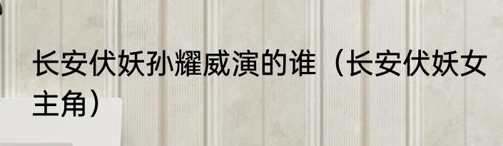 长安伏妖孙耀威演的谁(长安伏妖女主角)