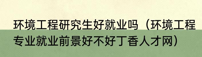 环境工程研究生好就业吗(环境工程专业就业前景好不好丁香人才网)