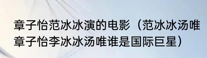 章子怡范冰冰演的电影(范冰冰汤唯章子怡李冰冰汤唯谁是国际巨星)
