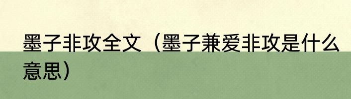 墨子非攻全文(墨子兼爱非攻是什么意思)