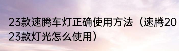 23款速腾车灯正确使用方法(速腾2023款灯光怎么使用)