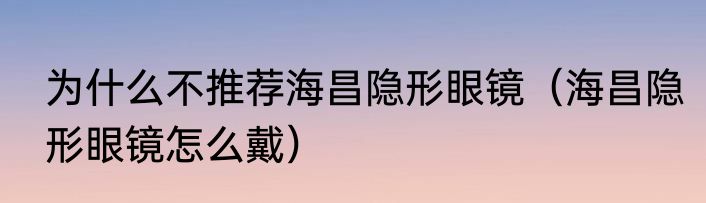 为什么不推荐海昌隐形眼镜(海昌隐形眼镜怎么戴)