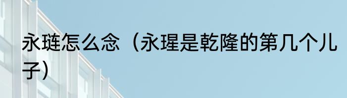 永琏怎么念(永瑆是乾隆的第几个儿子)