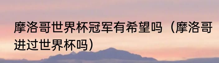 摩洛哥世界杯冠军有希望吗?