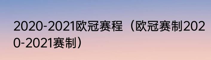 2020-2021欧冠赛程(欧冠赛制2020-2021赛制)