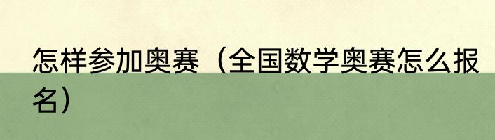 怎样参加奥赛(全国数学奥赛怎么报名)