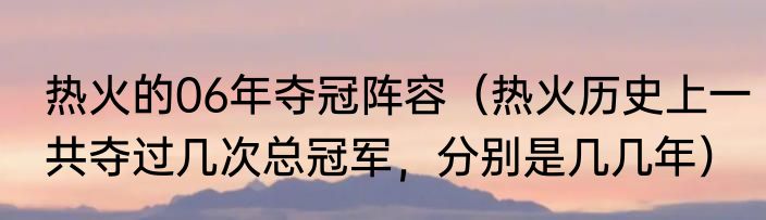 热火的06年夺冠阵容(热火历史上一共夺过几次总冠军,分别是几几年)