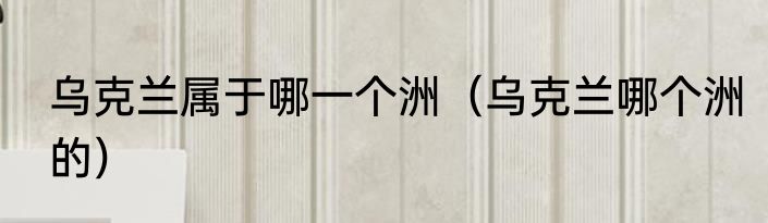 乌克兰属于哪一个洲?