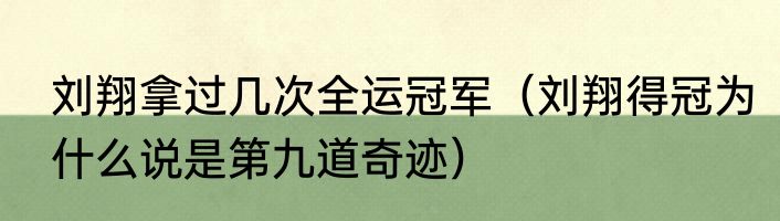 刘翔拿过几次全运冠军(刘翔得冠为什么说是第九道奇迹)