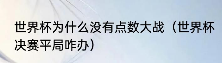 世界杯为什么没有点数大战(世界杯决赛平局咋办)