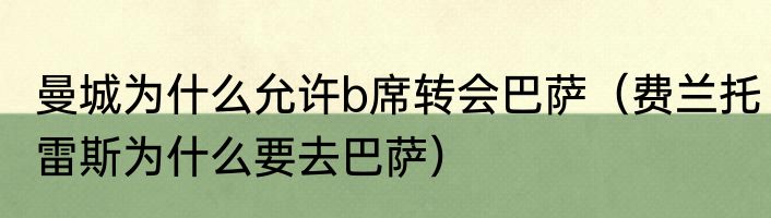 曼城为什么允许b席转会巴萨(费兰托雷斯为什么要去巴萨)