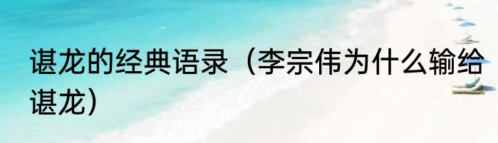 谌龙的经典语录(李宗伟为什么输给谌龙)