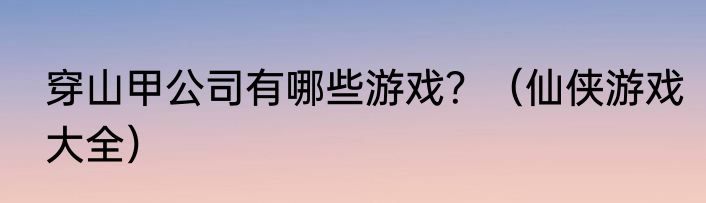 穿山甲公司有哪些游戏?(仙侠游戏大全)