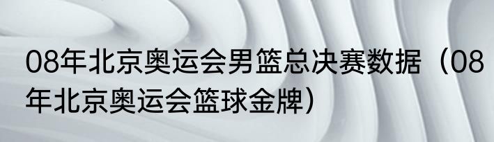 08年北京奥运会男篮总决赛数据(08年北京奥运会篮球金牌)