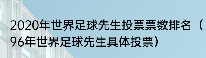 2020年世界足球先生投票票数排名(96年世界足球先生具体投票)