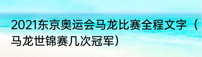 2021东京奥运会马龙比赛全程文字(马龙世锦赛几次冠军)