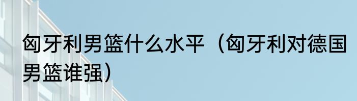 匈牙利男篮什么水平(匈牙利对德国男篮谁强)