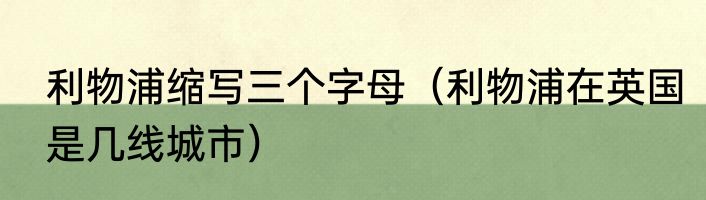 利物浦缩写三个字母(利物浦在英国是几线城市)
