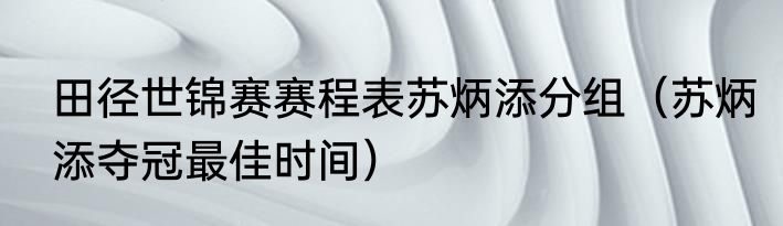 田径世锦赛赛程表苏炳添分组(苏炳添夺冠最佳时间)