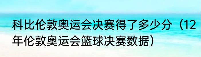 科比伦敦奥运会决赛得了多少分(12年伦敦奥运会篮球决赛数据)