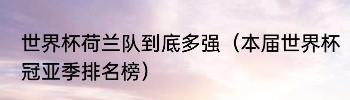 世界杯荷兰队到底多强(本届世界杯冠亚季排名榜)
