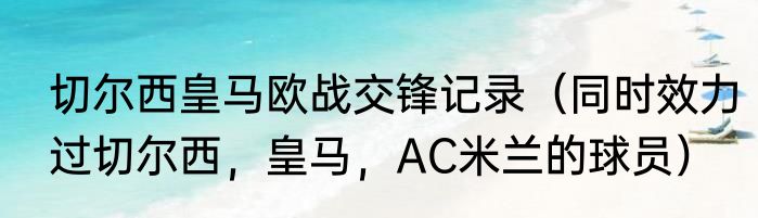切尔西皇马欧战交锋记录(同时效力过切尔西,皇马,AC米兰的球员)