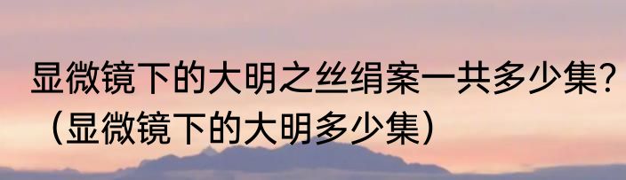 显微镜下的大明之丝绢案一共多少集?(显微镜下的大明多少集)