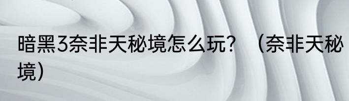 暗黑3奈非天秘境怎么玩?(奈非天秘境)